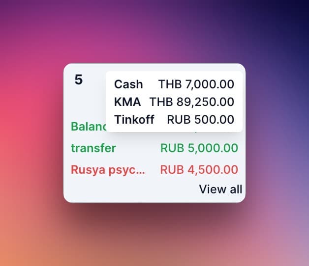 Breakdown balances by currency, or auto-convert to one.