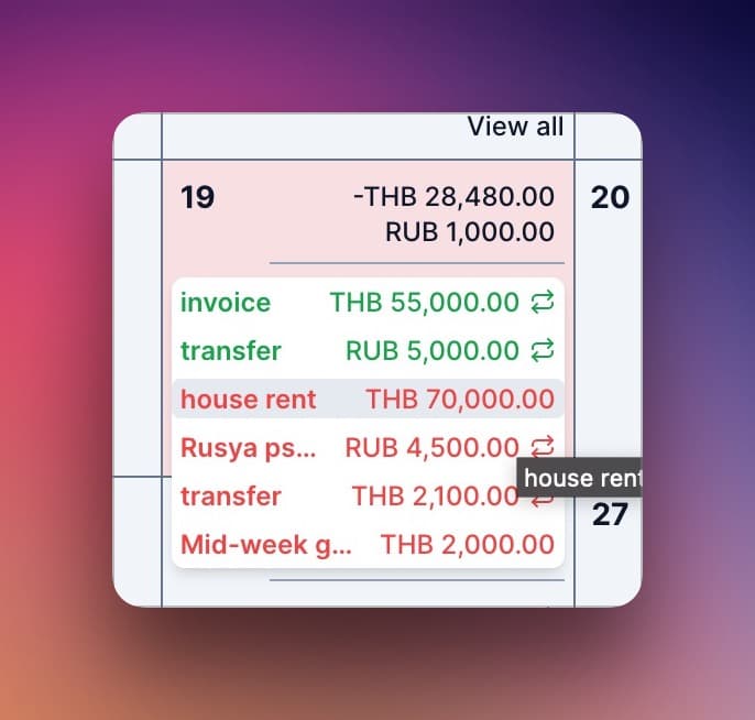 “This is the calendar with coming balances I always had in my head! Crazy I didn't saw this before.”
